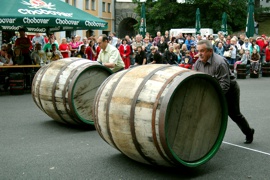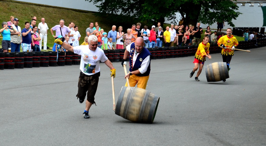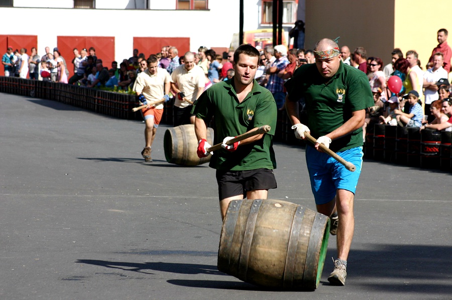 - …a závod osobností s obřími ležáckými sudy